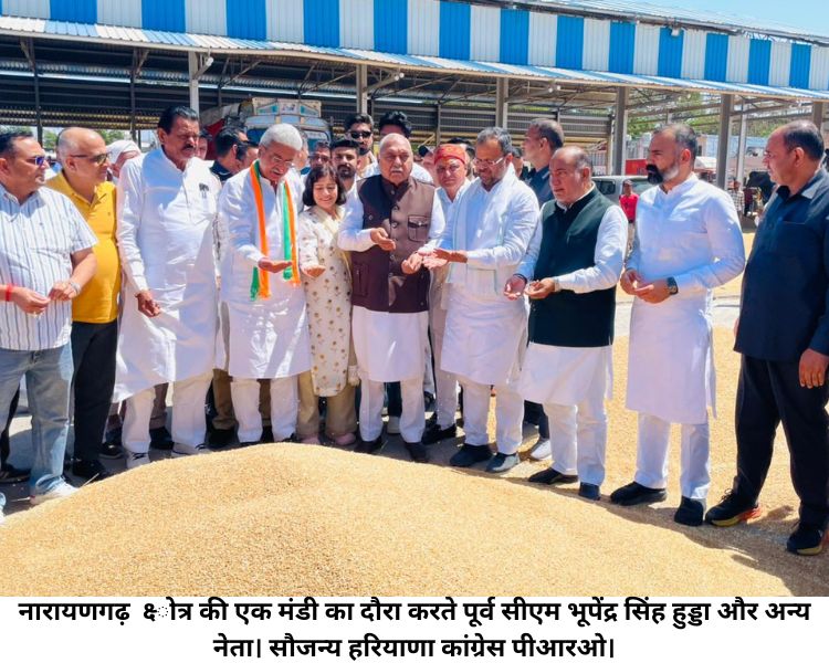 हुड्डा और राव नरेंद्र सिंह ने अन्य कांग्रेस नेताओं के साथ नारायणगढ़ क्षेत्र की अनाजमंडियों का दौरा कर फसल खरीद का जायजा लिया। हुड्डा ने कहा है कि भाजपा सरकार फसल खरीद के नाम पर सिर्फ घोटाले करती है। गेहूं-सरसों खरीद के नाम पर एक और घोटाले को अंजाम दिया जा रहा है। सरकार गेहूं और सरसों की खरीद करने की बजाय किसानों पर एक के बाद एक अजीबो-गरीब शर्तें थोप रही है।